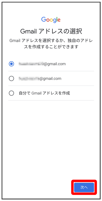 Gmail アドレスを選択