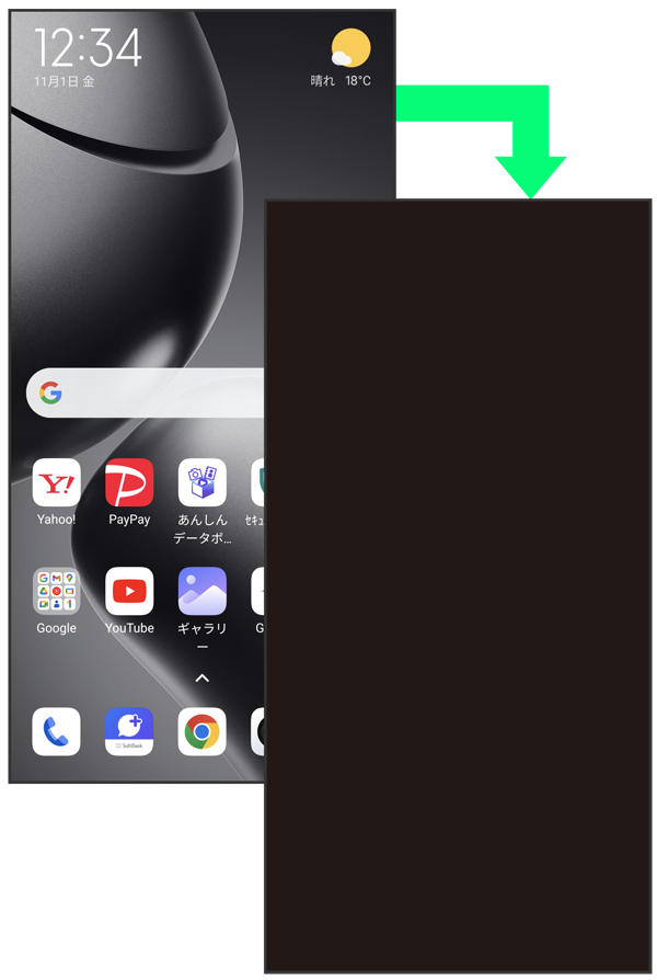 - 画面点灯時に電源キーを押すと、手動で画面ロック状態にすることができます。
