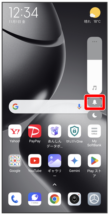 音量調節バーが表示されます。