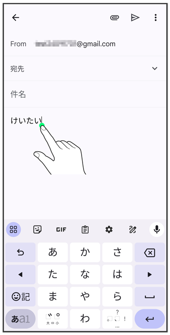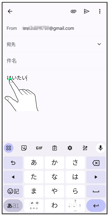 入力済みの文字をロングタッチ
