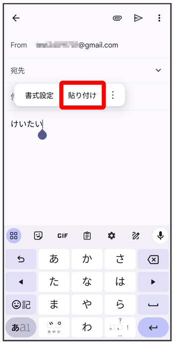 貼り付ける位置でロングタッチ