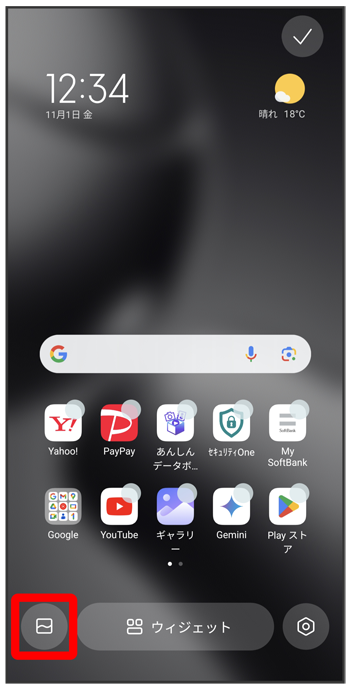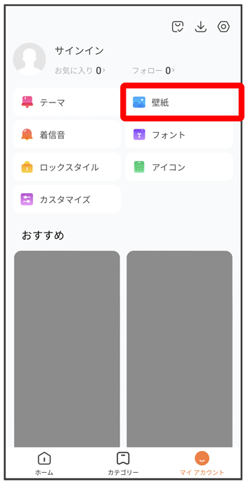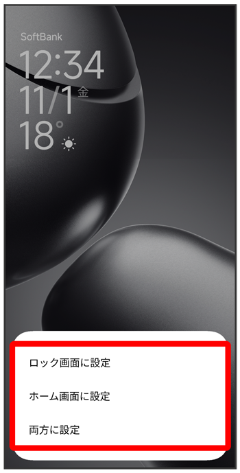 お買い上げ時に登録されている壁紙を変更する方法を例に説明します。
