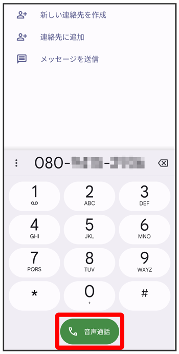 ロック画面で、画面を上にスワイプ/フリック電話番号を入力