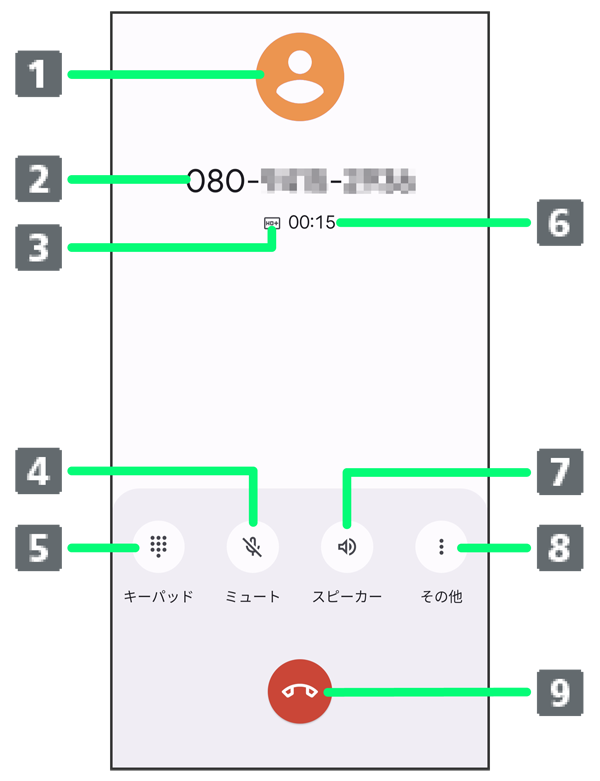 通話中は、アイコンをタップすることにより、次の機能が利用できます。