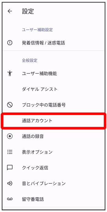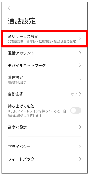 通話サービス設定画面が表示されます。