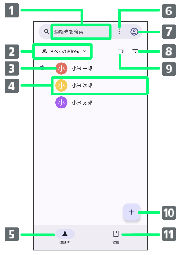 - 連絡先のインポート/エクスポートや電話番号のブロックなどを設定します。