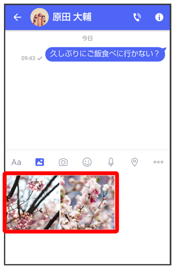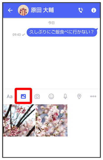 をタップすると画像/動画が添付されたメッセージが送信されます。