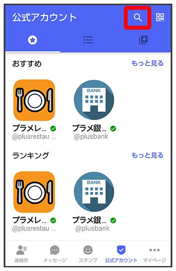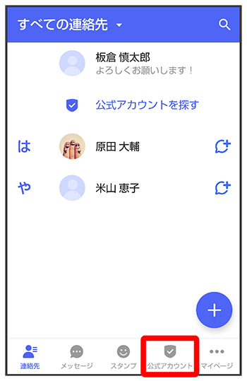 表示された公式アカウントをタップ