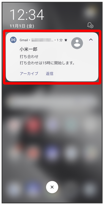 新着メールを受信するとステータスバーに