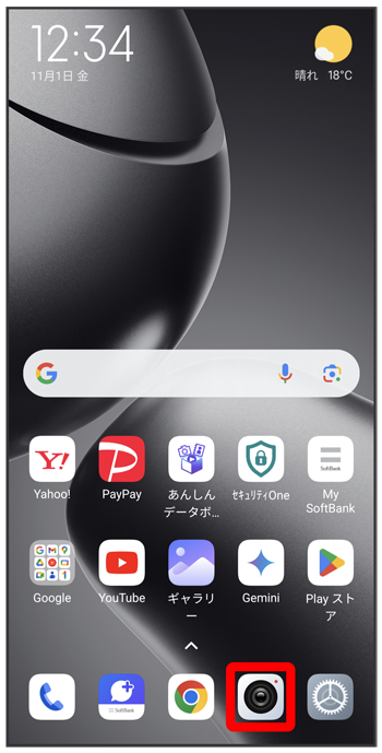 - 画質やQRコードの読み取り、自動夜景モードなどを設定できます。詳しくは、「写真撮影の設定をする」を参照してください。
