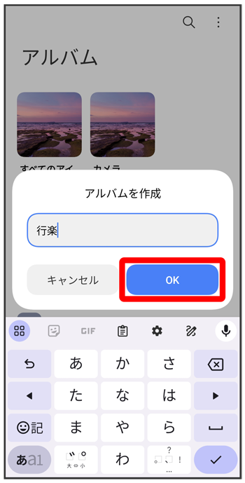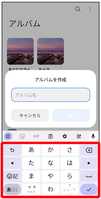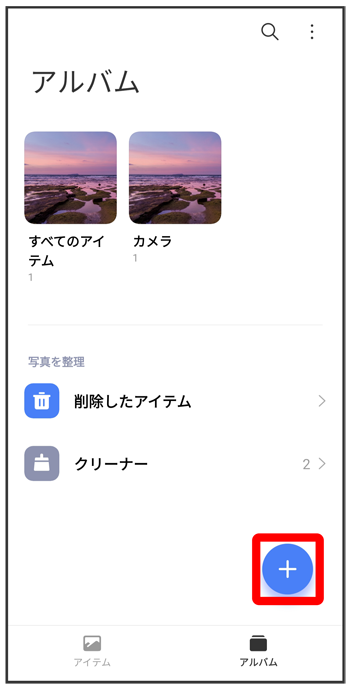 アルバム画面で写真/動画を追加したいアルバムをタップこちらで検索できます