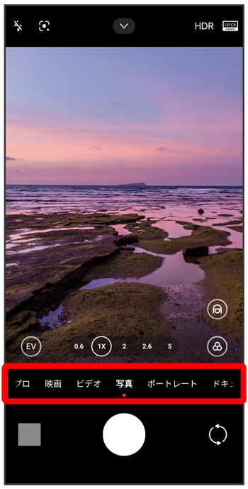 - 撮影モードを左右にドラッグしても、撮影モードを切り替られます。