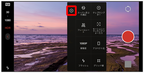 | 手ぶれ補正 | プロモードとタイムラプスモードで手ぶれを補正するかどうかを設定します。 |