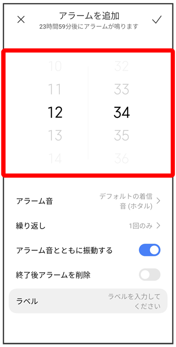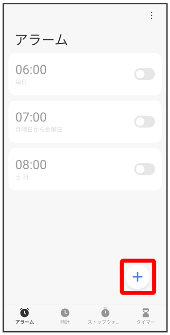 アラーム設定時刻になると、アラーム音やバイブレータでお知らせします。