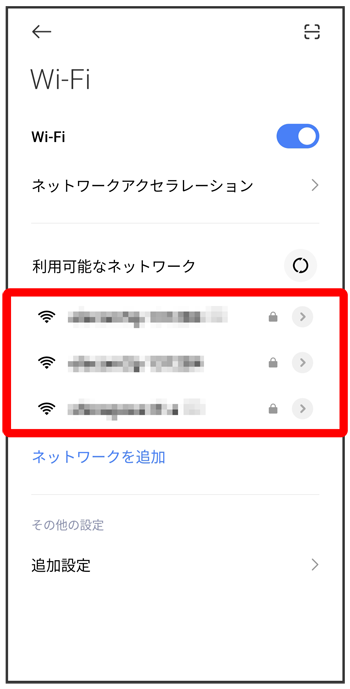 Wi-Fi設定画面で、接続中のWi-Fiネットワークの![]()
