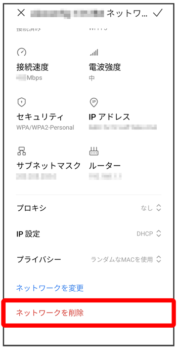 - Wi-Fiネットワークを削除すると、再接続のときにパスワードの入力が必要になることがあります。