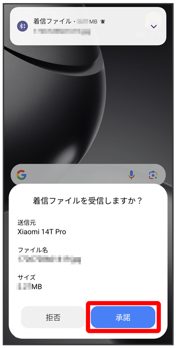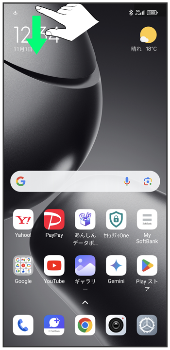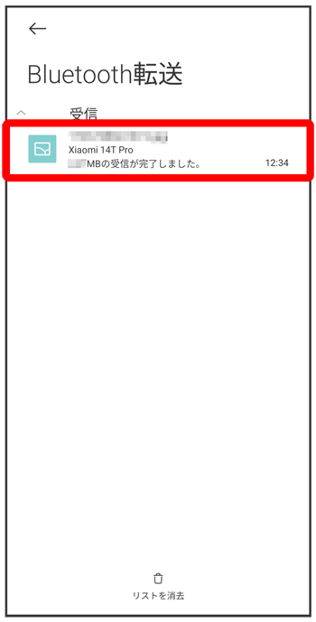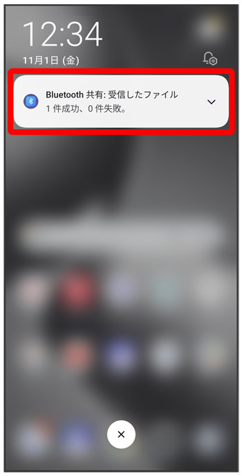 受信完了後、ステータスバー左側を下にスワイプ/フリック