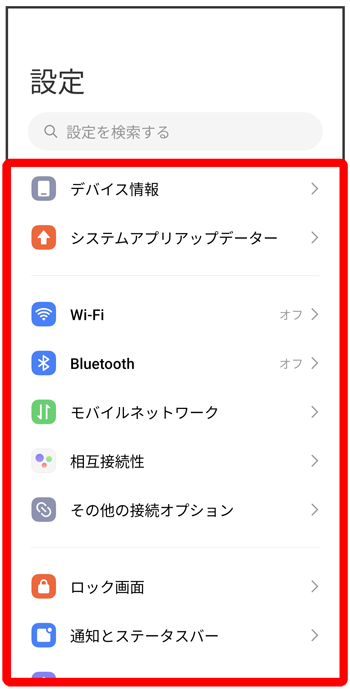 | デバイス情報 | デバイス名や電話番号などを確認することができます。 |