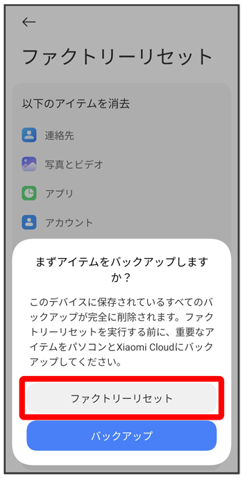 初期状態にリセットする