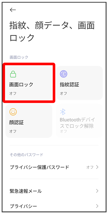 - すでに画面ロック解除方法を設定しているときは、ロックを解除する操作が必要です。