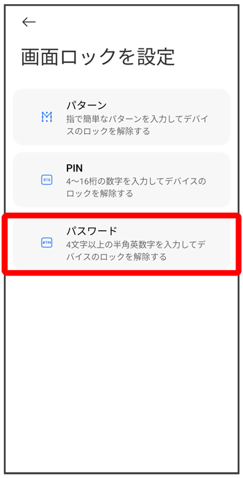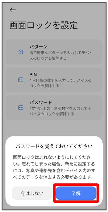 - すでに画面ロック解除方法を設定しているときは、設定が完了します。