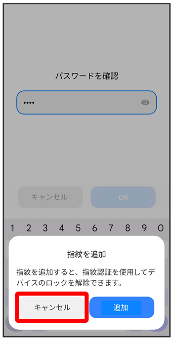 - 続けて指紋を登録するときは、をタップし、画面の指示に従って操作してください。