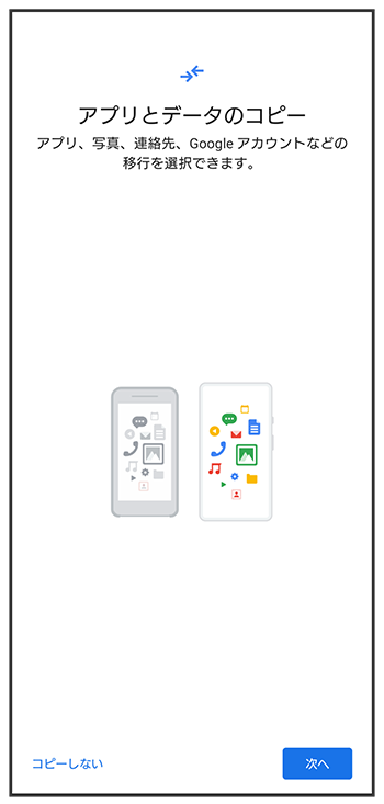 - Google アカウントを設定しているほかの端末からデータをコピーする場合は、をタップして、画面の指示に従って操作してください。