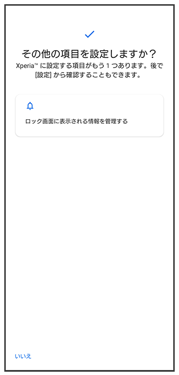 - その他の設定項目を設定しないときは、をタップすると初期設定が完了します。