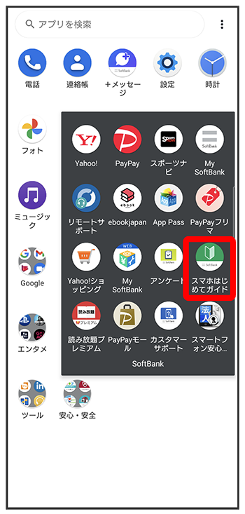 (スマホはじめてガイド)のご利用にあたっての注意に関する確認画面が表示されます。画面の指示に従って操作してください。