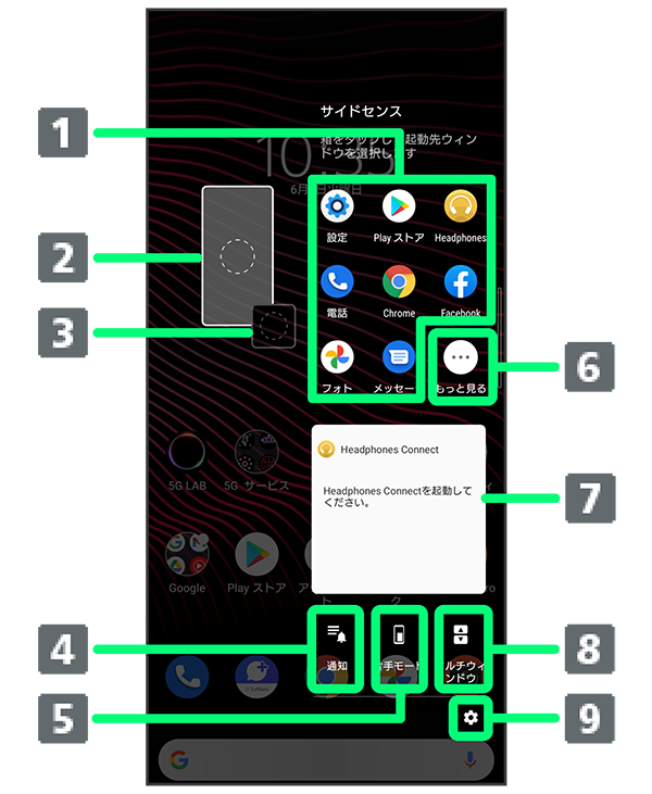 アプリ連携機能搭載のソニー製ヘッドホンの設定を、カスタイマイズすることができます。4 - マルチウィンドウメニューを表示5