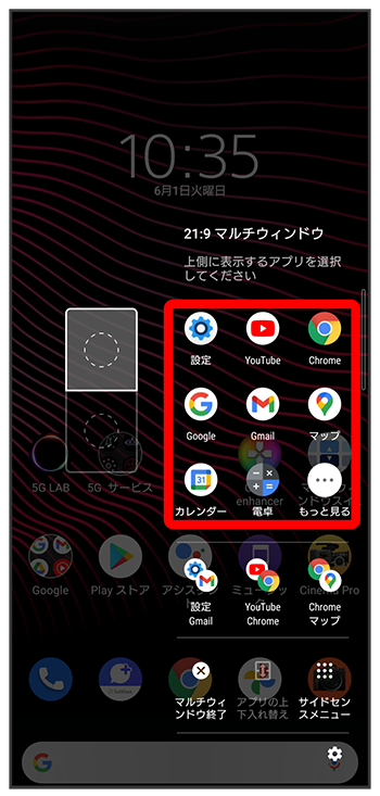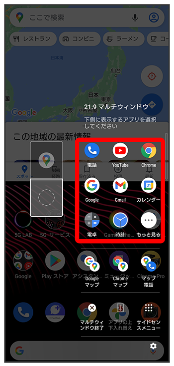 - サイドセンスバーをダブルタップと操作してもマルチウィンドウメニューを表示できます。