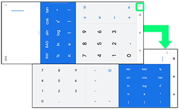 「画面の自動回転」をONにしている場合は、本機を横向きに回転させると、自動的に表示画面も横表示に切り替わります。「画面の自動回転」について詳しくは、「画面設定」を参照してください。