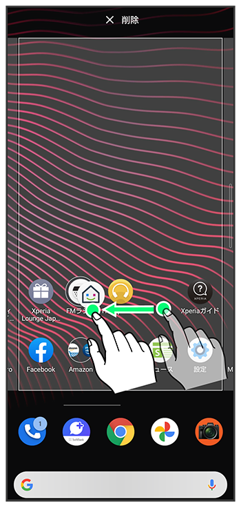 ホーム画面/ランチャー画面でフォルダに入れたいアイコンをロングタッチ