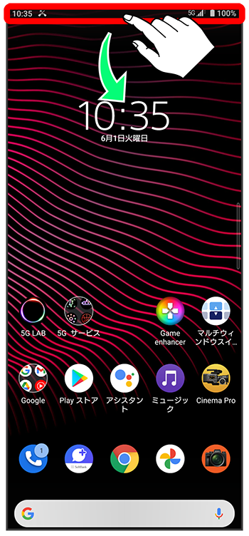 ステータスバーを下にフリック