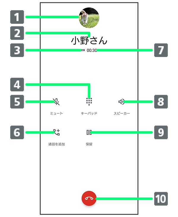 通話中は、アイコンをタップすることにより、次の機能が利用できます。