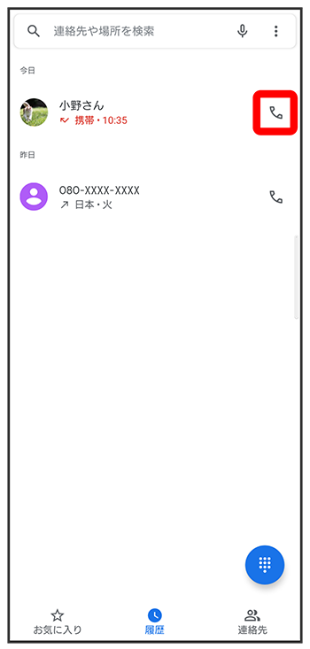 通話履歴から電話をかける