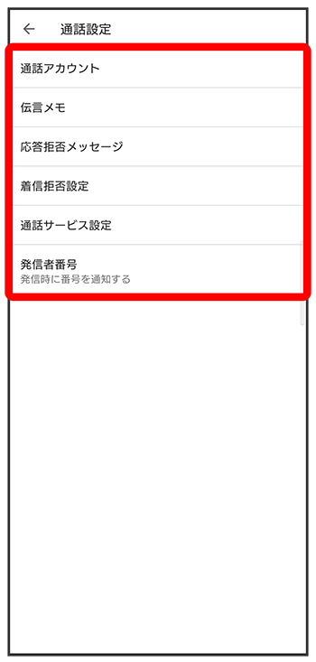 通話に関する設定ができます。設定できる項目は次のとおりです。