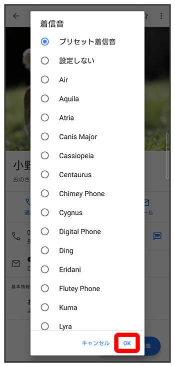 - ダウンロードした着信音などを設定する場合は、をタップして画面の指示に従って操作してください。