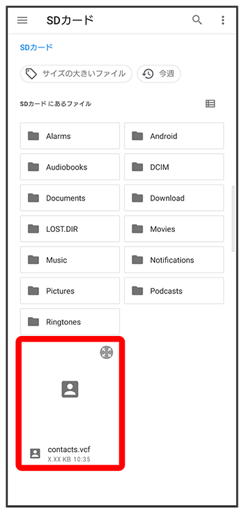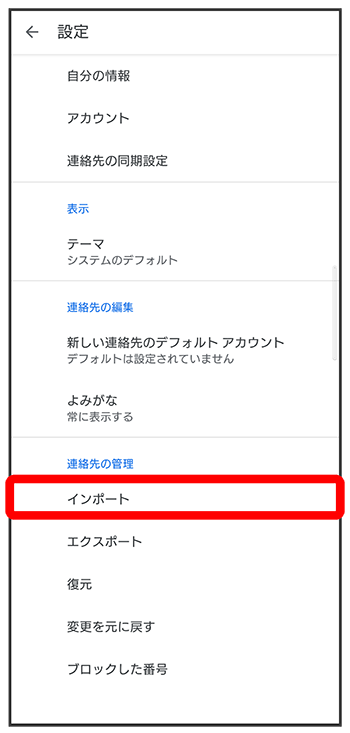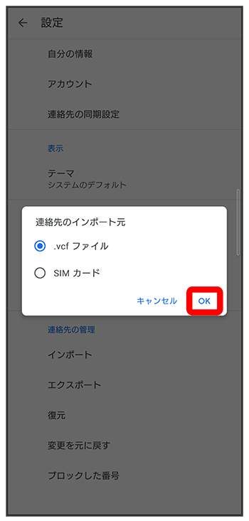 SDカードに保存(バックアップ)した電話帳データを読み込み(インポート)できます。