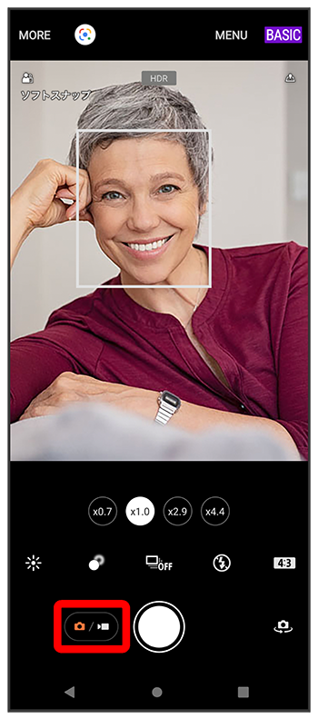- フロントカメラを使用して撮る場合や、ぼけ効果を利用している場合、「ポートレートセルフィー」「パノラマ」に設定している場合は、ズームを使用できません。