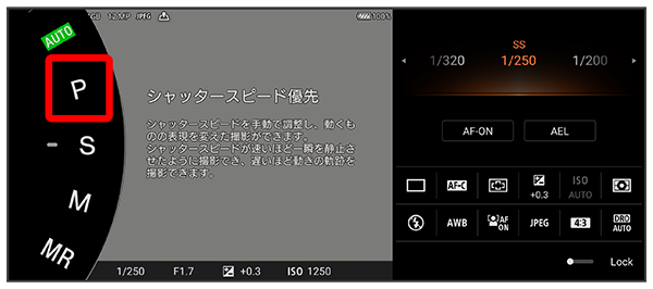 シャッタースピードを自動で調整して、その他の設定を手動で調整して撮影できます。