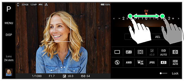 EV値(露出値)のダイヤルを左右にドラッグして設定