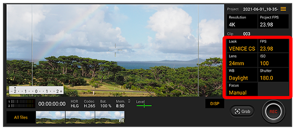 | FPS | フレームレートを変更します。 •「120」を選択すると、スローモーションでクリップを撮影できます。 |
