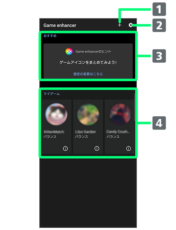 おすすめのゲームやGame enhancerの機能紹介が表示されます。 - ゲームランチャー