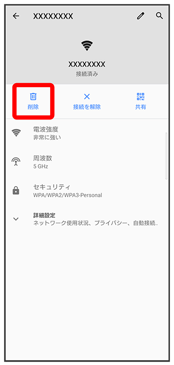 Wi-Fi ネットワークが削除されます。