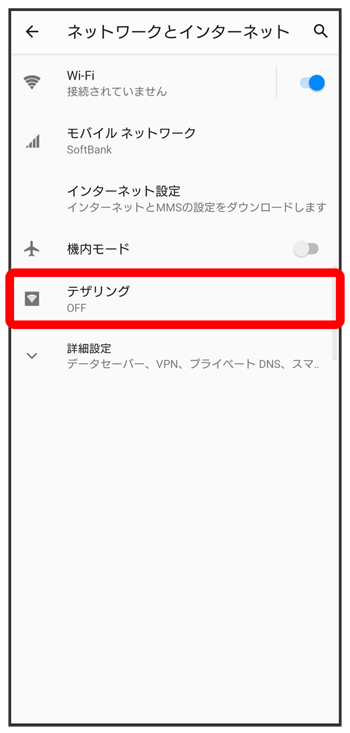テザリング画面が表示されます。