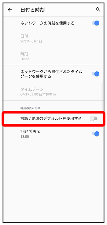 ユーザーの言語/地域の標準に従って24時間表示/12時間表示が自動設定されます。