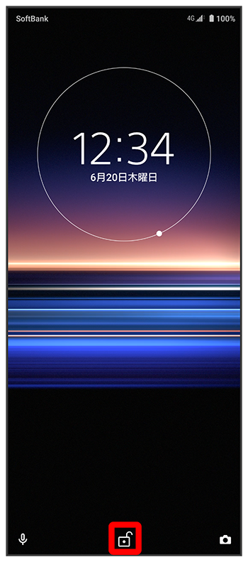 ロック画面を上にフリックを2回タップ- 画面のロックを「パターン」/「ロックNo.」/「パスワード」に設定しているときのみ利用できます。