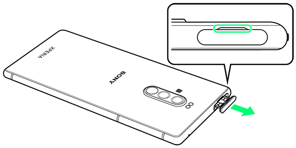 - ミゾに指先(爪)をかけて、SIMカード/SDカード挿入口のカバーをまっすぐに引き出してください。