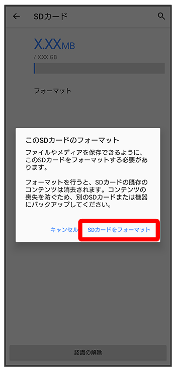 SDカード内のデータがすべて消去されます。